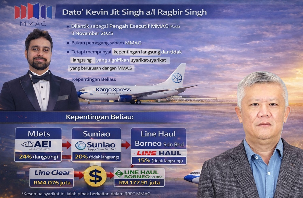 Masalah utama RRPT MMAG bermula pada struktur dan masa pelaksanaan transaksi. Antara urus niaga teras ialah perjanjian antara MJets dan Asia Express Limited bernilai RM4.799 bilion, melibatkan perkhidmatan penerbangan kargo, pengendalian kargo serta gudang. Ini disusuli transaksi Line Clear dengan Suniao Supply Chain bernilai RM1.076 juta, serta Line Clear dengan Line Haul Borneo bernilai RM177.91 juta. Kesemua transaksi ini berlaku dalam tempoh kurang daripada sebulan, antara 2 hingga 30 Disember 2025, sekali gus menimbulkan persoalan sama ada penilaian bebas, semakan kepentingan dan perlindungan terhadap kepentingan pemegang saham minoriti telah benar-benar dilaksanakan secara menyeluruh dan telus. Dalam konteks pasaran modal, skala nilai, pertindihan kepentingan dan kepantasan transaksi ini menjadi isyarat amaran yang sukar diketepikan.